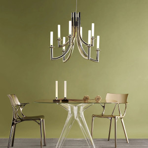 Glamour and luxury: Glamour is expressed through luxurious and sparkling elements such as crystals and gold finishes. They add a touch of opulence to any room. Designers like Philippe Starck and Zaha Hadid have created pieces that embody the essence of luxury, while Slamp is known for its glamorous collections.