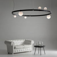 Stant ist eine moderne Pendelleuchte, die Designelemente aus Vergangenheit und Gegenwart vereint. Seine statischen und linearen Formen aus weiß oder schwarz lackiertem Aluminium erinnern an die technischen Strukturen der frühen 1900er Jahre. Was Stant wirklich einzigartig macht, ist die Möglichkeit, es an Ihren Geschmack und Ihre Bedürfnisse anzupassen. Die Komponenten sind deutlich sichtbar und mit sichtbaren Stiften zusammengesetzt, wodurch ein industrieller Chic-Effekt entsteht, der sich perfekt in den zeitgenössischen Stil der Innenräume einfügt. Am Sockel der Leuchte befinden sich zylindrische Strahler, die in zwei verschiedenen Größen frei eingesetzt werden können. Diese Strahler sind in der Lage, bestimmte Bereiche oder Objekte zu beleuchten und Lichtschwerpunkte zu schaffen, die der Umgebung Charakter und Tiefe verleihen. Darüber hinaus ist es mit Stant möglich, Milchglaskugeln mit zwei verschiedenen Durchmessern hinzuzufügen. Aber die eigentliche Stant-Revolution ist der Verzicht auf zusätzliche Netzkabel. Dank eines integrierten Stromversorgungssystems ist es möglich, die Elemente frei einzusetzen, ohne sich Sorgen machen zu müssen, dass Kabel die Ästhetik der Umgebung stören.
