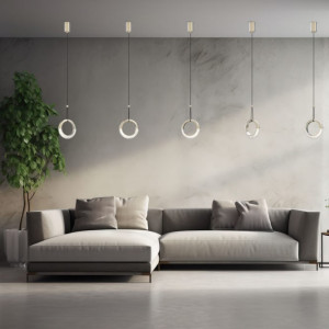 Die Auswahl umfasst Pendelleuchten wie Aurora, Sospesi, Infinity, Perla, die die Eigenschaft haben, einzeln oder in mehreren Kompositionen verwendet werden zu können, mit der Möglichkeit, je nach ästhetischen und Beleuchtungsbedürfnissen eine größere Anzahl von Lichtpunkten hinzuzufügen. Diese Pendelleuchten eignen sich besonders gut als Wohnzimmer-Kronleuchter. Andere, wie die Wohnzimmerlüster Nemo und Focus, bieten die Möglichkeit, das Licht an die gewünschte Stelle zu lenken.