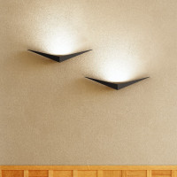 Wandleuchte mit minimalistische Linien. Der Rahmen ist aus glänzend lackiertem Metall, der Diffusor besteht aus Glas mit Dekorationen aus Kirschholz oder mit gebürstetem Nickel-Endbearbeitungen. 90 cm lang.
