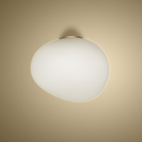 Gregg, Tischleuchte mit Diffusor aus weißem, rotationsgeformtem Polyethylen, ideal zur Beleuchtung verschiedener Wohnkontexte. Gregg ist eine von den Designern Ludovica und Roberto Palomba entworfene Design-Tischleuchte, deren Form der eines Steins auf dem Grund eines Flusses ähnelt. Ein Beleuchtungszubehör mit hoher Einrichtungsleistung, das auf modern eingerichtete Räume abgestimmt ist. Sie strahlt weiches, gleichmäßiges Licht in den Raum und ist in drei verschiedenen Größen verfügbar: mittel, groß und extra groß.
