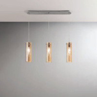 Sintesi ist ein Kronleuchter mit einem einfachen Design. Er besteht aus einer Metallstruktur mit Deckenbefestigung und längenverstellbarem Kabel und einem zylindrischen Borosilikatglasdiffusor. Erhältlich in zwei Ausführungen, Geräuchert für einen eher industriellen Stil oder Bernsteinfarben für Umgebungen mit hellen Möbeln für eine warme und einladende Atmosphäre. Erhältlich sowohl als Einzelpendelleuchte als auch als Dreipunktleuchte. Sintesi ist eine Hängeleuchte, die sich ideal für Küchen oder Esszimmer eignet.