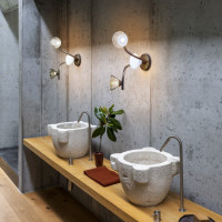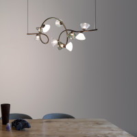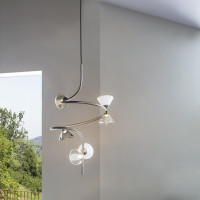 Linfa ist eine moderne Stehleuchte, die von der Natur inspiriert ist und von Federico Peri entworfen wurde. Ihre geschwungenen und eleganten Arme erinnern an die Adern von Blättern, während die Lichter wie Tautropfen leuchten. Vorgeschlagen in den Ausführungen Gold, Titan oder mattes Nickel. Die aus Muranoglas gefertigten Lichtquellen werden in verschiedenen Varianten angeboten: rauchfarben, transparent oder milchig weiß. Zu den verwendeten Materialien gehören Metall, Aluminium und Glas. Die Lampe verfügt über ein 300 cm langes Kabel, einen Stecker vom Typ A, G oder C (EU) und einen Dimmer 80 cm vom Sockel entfernt. Darüber hinaus ist es mit integrierten LEDs ausgestattet und es können verschiedene Glaskombinationen angefragt werden.