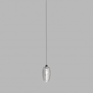 Die exklusive Lampenlinie Damasco unterscheidet das Design von Vistosi. Hängelampen, Scheinwerfer, Stehlampen, Tischlampen und Wandleuchten mit geblasenen Kristalldiffusoren, die dann von Hand verarbeitet werden: Der raffinierte Texturkokon entsteht durch Gießen von geschmolzenem Glas von Hand auf die Farbe der Lampen.