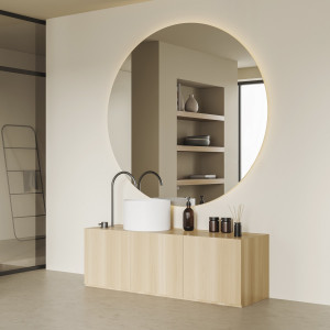 The width of the lamp must be at least equal to that of the mirror if the light is directed downwards. For a light directed towards the room, the bathroom wall lamps can be smaller. Place the lamps approximately 75-80cm above the edge of the mirror for uniform lighting.