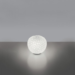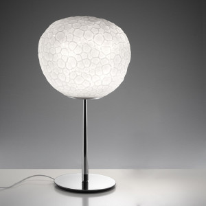 Meteorite is a collection composed of suspension lamps, table lamps, lampshades, floor lamp and wall or ceiling lamp. Collection for complete lighting of your home, keeping a modern style consistent in all living spaces. The lamps in the collection are all composed of a steel structure with a very particular diffuser. In fact, the latter is made of double-layered artistic glass obtained with the artisan technique of molded blow molding, subsequently ground. Meteorite can be used to illuminate the living room or dining room with the chandelier with adjustable cables. The applique or ceiling lights of the collection have also been designed for stairs and corridors that are often overlooked. While table lamps can be ideal for living room furniture but also for bedside tables in the bedroom. Meteorite is compatible for both halogen bulbs and LED bulbs allowing a considerable saving in energy consumption.