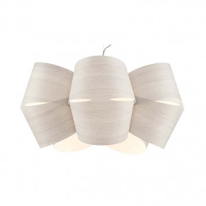 Pendant lamps and ceiling lamps made of polilux wood, microcorrugated polilux, metalux chrome, of captivating design and available in various colours.