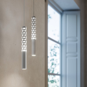 In this section Light Shopping offers a selection of design chandeliers made by the italian company Rotaliana. This brand is distinguished in the lighting panorama for beeing able to interpret contemporary design combining tradition and innovation. Rotaliana has been able to present to the public beautiful products not only from the aesthetic point of view, but also capable of being useful objects for people's daily life. Rotaliana chandeliers are the result of a collaboration with talented designers both Italian and foreign, that represent a balanced mix of technology, functionality and also very great quality.
