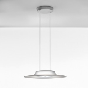 Fludd collection that takes its name from the lamps that compose it, ceiling lamp and suspension lamp. The element that characterizes the collection is the large transparent disc that acts as a diffuser. Anti-glare mini-prisms that refract the light emitted by the upper light source concentrating it downwards. In the ceiling version the ceiling is also illuminated. Collection with a high color rendering index (CRI) which guarantees respect for the perception of colors and the correct lighting of the environment. Fludd ceiling lamp is ideal for illuminating any living space, including corridors and stairs, while the pendant version is perfect for dining tables or bedrooms with a modern and contemporary style. All the lamps in the collection are dimmable to create the right atmosphere for any occasion. Also available in the Casambi version or with voice systems for light management.