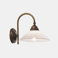 Country is a vintage-style ceiling lamp characterized by a white blown glass diffuser with a burnished brown edge. This ceiling lamp is completely made in Italy, made by expert craftsmen following the millenary tradition of Murano glass. Ideal for lighting environments furnished in a rustic style. Brass frame. Proposed in various models. Recommended in combination with suspension and ceiling lamps from the same collection.