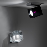 Cubetto is a small modern ceiling light with a compact, elegant and refined design. The cubic diffuser is made of crystal and available in transparent, white or black versions. Compatible with low-consumption LED light sources. This small ceiling light can be installed in any environment from the modern to the more classic style. Available in a single version or with three light points.