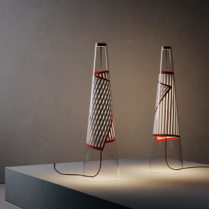 For Lodes, Ron Arad creates Cono di Luce, a lamp with a modern design and high luminous efficiency, perfect for refined environments. The unique flexible printed circuit inside the transparent Pyrex® cone creates an interesting contrast between light on and off, creating a unique and elegant visual effect. The 1.6 mm thick PCB frame not only provides support for the lamp and allows for turning on, but also ensures the correct positioning of the PCB sheet. Once turned on, Cono di Luce transforms the environment with its optical texture that creates plays of light, shadows, and overlays. Available in three different frame finishes - red, gray, and gold - and in two variants, both as a table lamp and a pendant, Cono di Luce presents itself as a decorative and functional work of art to make every space unique.