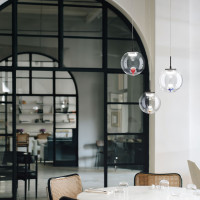 Arial is a modern chandelier equipped with an elegant metal frame and a spherical borosilicate glass diffuser, which makes it not only a source of light, but also a classy decorative element. You can choose between three, four or five LED light points, which will allow you to adjust the lighting to your liking. In addition, this chandelier is also dimmable in steps, so you can create the perfect atmosphere for any occasion. If you are looking for a touch of style for your home, the transparent / drop finish of Arial will win you over. Ideal for lighting the living room or kitchen.