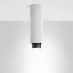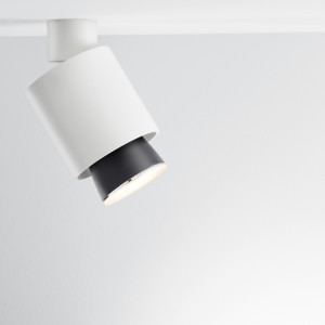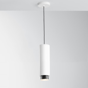 Claque is a collection of modern lamps inspired by the theatrical world. In this context, light is a fundamental element which creates rhythm, suspense and enhances the actors' performances. In the same way, Claque lamps are created with the aim of directing light towards a particular point or object in order to make the most of it. This is a family of projectors consisting of various types of fixtures and including chandeliers, recessed or track mounted ceiling lights. The shape of the diffuser is cylindrical and is available in several sizes: large, medium and small. The finishes are two-tone with a choice between black and white or black and bronze. The light source is warm white LED and produces no less than 1700 lumens for complete and effective lighting. The modern and contemporary design of these lamps makes them particularly suitable for lighting offices, professional studios and commercial areas.