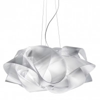 Fabula is a design suspension lamp made of Lentiflex®, a heat-resistant material patented by Slamp, with shapes reminiscent of a long and soft silk band wrapped around itself. This suspesnion lamp is available in 60 or 48 cm sizes, with five or three lights. Fabula, applique with a suggestive and sophisticated design is ideal for lighting various domestic environments such as living rooms, bedrooms, dining rooms, but also corridors and entrances. Available with magnetic attachment for easy cleaning and maintenance. We recommend matching with the wall / ceiling lamp from the same collection.