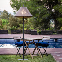 Saigon is a design lamp, created by Nahtrang, which stands out for its simplicity. This floor lamp is perfect for illuminating outdoor spaces, creating a warm and welcoming atmosphere for your outdoor moments. The Saigon floor lamp has a large beige lampshade made of rope, which lets the light through, creating a beautiful luminous effect that envelops everything around it. There's nothing more relaxing than sitting outside, surrounded by the soft light of this outdoor floor lamp. Saigon is a perfect choice for those who love minimalist design and simplicity. With its pure shape and unique lighting effect, this floor lamp is a stunning addition to any outdoor space. Available in several models and in the version with picket.