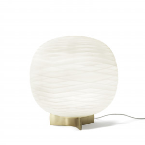 Gem is a collection of lamps created by designers Ludovica and Roberto Palomba. Gem is offered in the table and suspension version. Through a sequence of sound experiments a fluid vibration was reproduced on the glass that inspired the creation of this lamp. The elegant spherical diffuser in white glass is crossed by regular geometric lines that determine a surface with bands and rhombuses. Gem is a piece of furniture that enchants with its precious materials and craftsmanship. Gem lamps are unmistakable when switched off and when lit they give unexpected effects.