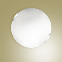 Modern wall lamp with half-moon diffuser made of glass. On the sides there are two decorative metal elements. Available in various sizes and versions. The white colour and essential lines make it suitable for any type of environment, from the most classic to the most modern. Suitable for living rooms and lounges, but also for entrances and corridors.