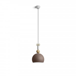 Bonton is composed of overlapping elementary volumes and different materials combined with each other. Lamps seen, however, as pieces of jewelry. Wood, painted aluminum and a swirl of brass, the iconic and distinctive sign of these lamps.