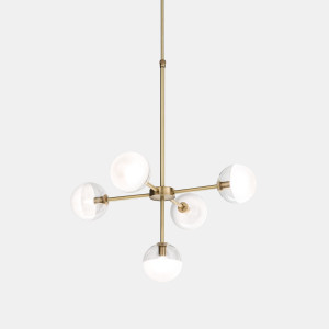 In particular, the Alma chandeliers are offered in 5 models with one or two light points, they have a dimmable LED light source, available in brushed brass or black finishes.
