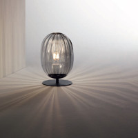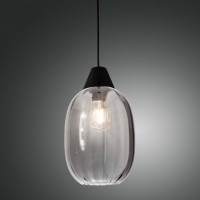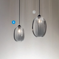Infinity is a modern oval-shaped chandelier. Composed of a black metal structure and a transparent grey blown glass diffuser with pleated weave. Infinity is available as either a single pendant or three-light cluster. This pendant lamp is ideal for living rooms, kitchens and bedrooms with a modern style. Infinity is equipped with the SmartLuce accessory, allowing you to customise the beam of light in a convenient way. We recommend combining it with the table lamp from the same collection.
