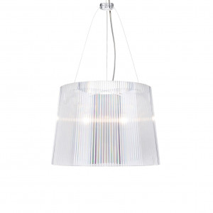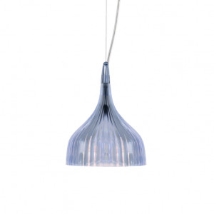 Instead, the E 'lamp is characterized by an essential and romantic design, available in two versions: wall and suspension. The diffuser is characterized by a bell shape with a pleated effect available in various colors while the structure is in chromed metal. E'  lamps are suitable for illuminating multiple environments.