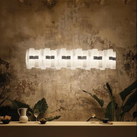 La Lollo is a design circular suspension chandelier inspired by the 1950s. The series of technopolymer cylinders is arranged around a central luminous ring alternating prismatic colors, metallizations, laces, contemporary chromatic gradients and geometric designs. Available in three sizes. This chandelier is suitable for lighting living rooms, bedrooms but also waiting rooms, adding a decorative element to the environment.