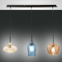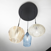 Olbia is a modern wall lamp characterized by a glass diffuser with a striped surface, ideal as decorative lighting for the living room, the entrance and the bedroom. It guarantees a warm and uniform light. Available in amber, champagne and light blue finishes.