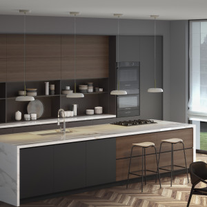 To express a sort of purity, materials such as wood, glass and stainless steel are used.