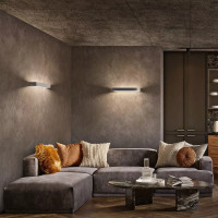 Metal is a modern wall lamp with LED light source with indirect light emission. This wall lamp is composed of a white silk-screened glass lampshade that allows to spread the light diffused, both upwards and downwards, and a rectangular frame with rounded corners in white colored aluminum or smooth finishing. Its minimalist design and firm lines makes it an ideal wall lamp to enlight different rooms such as passageways, hallways, entrances, stairs or living areas furnished in a modern and minimalist style. Metal is available in three different sizes: small, medium and large.