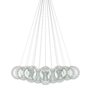 The modern Random Cloud chandeliers are designed to offer a contemporary and refined design, reinterpreting the classic pendant lamp in a unique and innovative way. The spherical diffuser made of blown glass, available in a variety of elegant colors, perfectly suits any décor style, from classic to modern. With four different models and the option to choose between 7, 14, 19, or 23 light points, Random Cloud offers great flexibility to meet diverse lighting needs. The spheres, available in two distinct diameters, are connected and mounted on a single ceiling rose, creating a broad 'cloud of light.' The phase-cut dimmable LEDs allow you to adjust the light intensity, offering total control over the atmosphere you wish to create. In addition to illuminating spaces, Random Cloud chandeliers are impactful decorative elements, capable of enhancing and enriching any environment, whether it's a living area, a dining table, or contract settings like hotel lobbies or restaurants.