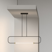 The Skylines lamp stands out for its minimalist and geometric design, which combines thin metal tubes with floral-shaped Pyrex glass diffusers. With its integrated LED and Dali dimmer, Skylines illuminates and furnishes modern environments such as offices and open spaces, with a touch of elegance in black and brass. The adjustable structure allows it to be adapted to various heights, making it perfect for those looking for style and functionality. Available in small and medium sizes.