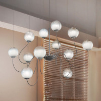 Puppet is a modern table lamp. This wall lamp is composed of a base from which a stem serves as a support for the diffuser, all in metal with chrome and black finishes. The diffuser, on the other hand, is made of blown gradient glass and irregularly striped so as to obtain particular plays of light. The diffuser can be shaded white, crystal color, smoky or transparent amber. Puppet is a table lamp ideal for lighting living rooms or bedrooms with a modern and sophisticated style.