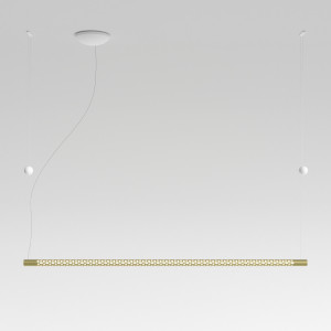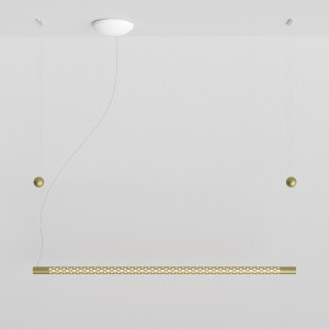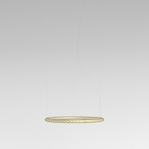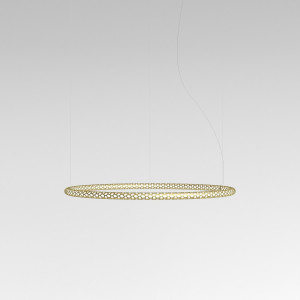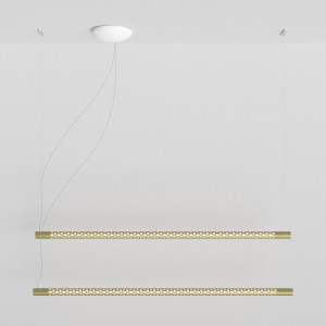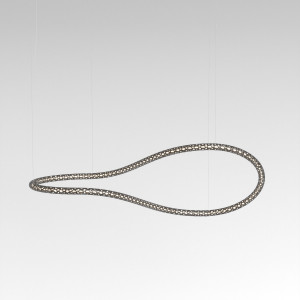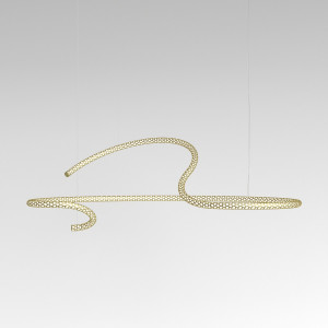 The Squiggle suspension lamps were designed by the designer Paolo Rizzato who was inspired by the "Struttura al neon, Neon structure" by Lucio Fontana. The thin cylindrical metal body is crossed by a sequence of holes that allow the passage of light. The tubular structure contains the LED light strip and winds to form various closed or open silhouettes. Squiggle lamps are works of art that amaze for their scenic effect and fill the spaces by furnishing and illuminating. The finishes available are white, silver and gold.