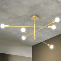 Anna, minimal floor lamp with geometric style. It is composed of a slender intersection of stems that come to the end with a round bulb, with homogeneous light diffusion. Anna is made of metal with a brushed brass finish, which recalls timeless and contemporary elegance. In addition to the suspension version, there is also the wall lamp that can be combined with the walls of bedrooms and corridors and the table lamp.