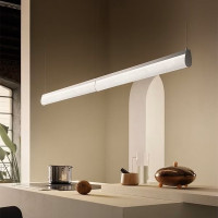 Modula is a modern lamp that plays with light in an unexpected and versatile way. The Plissé and Crystal effects are what make this pendant lamp one of a kind. The Pleated effect, inspired by the columns of medieval cloisters, creates a soft and evocative shading, while the Crystal effect, reminiscent of a texture of bright rhinestones, adds a touch of brightness and glamour. But the distinguishing feature of Modula lies in its homogeneous line of light that runs along the ridge, amplifying the luminous expression and creating a unique and welcoming atmosphere. Modula is ideal for illuminating a rectangular dining table, kitchen or bar counter, but its versatility makes it suitable for any environment. Thanks to its modern and sophisticated aesthetic, Modula is able to adapt to any style of furniture and become the centerpiece of any room.
