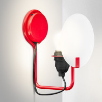 La Bugia is a wall lamp that brings with it a touch of history and tradition. With its shape it recalls the old candle holders with handle, called "bugia" in honor of the African city Bidgiaya which supplied most of the wax for making candles. This wall lamp, however, is a modern interpretation of the past, with a shiny painted metal structure available in 5 bright colors and a frosted glass diffuser. Bulbs included, this wall light is the perfect choice for those looking for unique and original lighting.