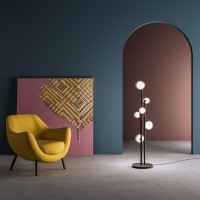 Nabila is a wall lamp that embodies the timeless elegance of the 50s. Inspired by the lamps of a golden age, Nabila is much more than just a luminous object; It is a style icon, a detail designed to transform domestic spaces. It is characterized by double-walled spherical borosilicate glass light fixtures. Its metal structure, expertly painted with epoxy powders, offers not only exceptional durability, but also a contemporary touch that blends perfectly with any style of furniture. Brushed brass details add a touch of luxury. Ideal for illuminating a dining room, hallway or living room.