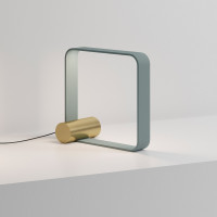 The Nastro table lamp stands out for its elegant and dynamic shape: a painted aluminum band that seems to bend lightly, balanced by a cylinder at the base that gives stability and character. The visual effect is refined but essential. Lighting is entrusted to an integrated, dimmable LED strip, managed via a touch control directly on the structure. The cylinder is available in different finishes, from metal to wood, brass to concrete, to suit various styles and environments.