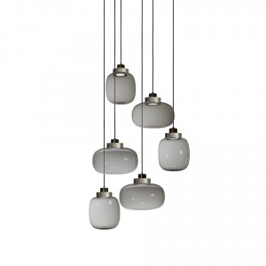 Ball brings together glass lamps that are ideal for interior lighting and includes Nabila, Musa and Legier. Nabila is a suspension lamp with a design inspired by the 50s. This lamp will not only be a light source, but it will also add that touch of class that will make any room unique and enhanced. What makes Nabila truly special are its double-walled spherical borosilicate glass light fixtures, which create a truly unique light-diffusing effect. You can choose between different versions, from a simple lamp with a single light point to larger versions with as many as 48 light points. Nabila is available as a table lamp, floor lamp and wall lamp. But now let's move on to Muse, a chandelier that masterfully combines vintage elegance and modern essence. This suspension lamp, made of metal, will win you over from the first glance thanks to its double-walled borosilicate glass diffusers. The tastefully shaped neo-vintage domes create a perfect harmony between interior and exterior, thanks to the glass frame that frames the light. Muse is also available in table lamp, floor lamp and wall lamp versions, so you will have the opportunity to illuminate and enhance every corner of your home with style and sophistication. And if you are looking for a chandelier with an elegant and refined design, inspired by classic Murano glass perfumers, then Legier is what you need. This chandelier features a mouth-blown glass diffuser with shades of smoked color and opal white, giving it an exceptional look. In addition, with its versatility, you can choose between the single version or the chandelier version with four or six elements. Also available in a table lamp version, Legier will also illuminate and enhance your moments of relaxation or workspace.