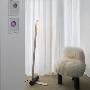Designed by Studiopepe, Nastro is a collection of modern lamps that combines formal lightness and visual balance, inspired by the fluid movement of a ribbon that folds in space. The distinctive element is a painted aluminium band, precisely curved and balanced by a decorative cylinder that acts as a counterweight: a simple but meaningful gesture that transforms light into an architectural object. The lighting system is based on an integrated and dimmable LED strip, capable of offering a warm, enveloping and adjustable light, suitable for different functional needs and atmospheres. The versions of the collection include pendant, table, wall and floor lamps, each designed to adapt with ease to domestic or contract environments, both indoors and outdoors. The cylinders are offered in a range of finishes ranging from painted metal to wood, from brushed brass to raw concrete, allowing for a high level of aesthetic customization. Neutral colours and tactile surfaces reinforce the refined character of the collection. Designed for modular light, Nastro is compatible with control systems such as TRIAC and, on request, also DALI and 110/120V power supply. Some models include built-in touch controls and portable options with USB-C charging, which are also ideal for outdoor use thanks to IP44 or IP54 protection, depending on the version. With the Nastro collection, Studiopepe signs a project in which design, matter and light dialogue harmoniously, giving life to a scenographic and discreet presence at the same time, capable of adapting to multiple contemporary contexts.