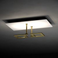 Triad 2.0_S is one LED ceiling lamp, but it can be installed also to the wall. It is composed from three rectanglular elements in sand blasted glass and arranged in parallel one with the other. Arranged in a different way between them, they are joined by a vertical band in white painted metal. The light is emitted in different directions thanks to a double light emission system that allows to obtain a beautiful decorative effect. The light source is LED, warm white with General Lighting light distribution.