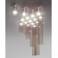 Tubes is a ceiling light with geometric and dynamic shapes. Available in five different sizes, this ceiling lamp can be used as a single suspension or by combining different heights together to obtain special effects. Tubes is a ceiling lamp made of blown glass with a metal base. Modern shaped ceiling lamp ideal to be inserted both in domestic living environments, such as living rooms or bedrooms. But also in the lobby and corridors of luxury hotels. Thanks to the availability of installation of LED bulbs, energy savings will be significant. Available in two blown glass shades and in different sizes.