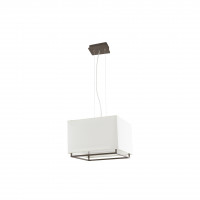 Geometric design for the modern metal table lamp with fabric lampshade. Equipped with on/off switch and 1,7 mt cable, is available in white/beige and dark brown/beige finitures.