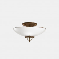 Country est une applique de style vintage caractérisée par un diffuseur en verre soufflé blanc avec un bord bruni. Cette applique est entièrement Made in Italy, fabriquée par des artisans experts suivant la tradition millénaire du verre de Murano. Idéal pour les environnements d'éclairage meublés dans un style rustique. Monture en laiton. Proposé dans divers modèles. Recommandé en combinaison avec des suspensions et des plafonniers de la même collection.