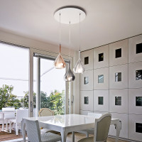 Lila est un plafonnier moderne conçu pour enrichir la cuisine avec style. Fabriqué en métal et en verre borosilicate, il se distingue par son design élégant et contemporain. Il est disponible en trois finitions raffinées: ambre, fumé et transparent, s’adaptant parfaitement à différents espaces. Grâce à la combinaison de matériaux de qualité, Lila allie fonctionnalité et esthétisme, devenant un élément décoratif polyvalent et sophistiqué.
