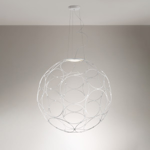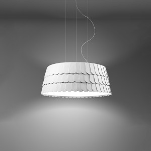La collection Roofer&Giro est pétillante, colorée et modulaire, idéale pour les espaces modernes. Roofer, jeune collection de suspensions conçue par le designer Benjamin Hubert. Des éléments individuels qui s’inspirent des tuiles en brique des toits des maisons. C’est une collection amusante parce qu’à partir d’une structure métallique, elle peut se transformer en un exutoire pour l’imagination et la créativité. Roofer est moderne, car les tuiles de caoutchouc peuvent être lavées en machine à 30°. Cinq formes différentes avec quatre nuances de couleur pour un style reconnaissable et des environnements personnalisés. Giro a été conçu dans le but de créer une lampe assez grande, mais en même temps, ouverte et légère, aérée. Simplicité et délicatesse obtenues grâce à l’utilisation de minces anneaux en acier et à leur qualité graphique. La collection se compose de suspensions pour espaces intérieurs disponibles en différentes tailles, composées de 32 anneaux de différentes tailles assemblés pour former un volume sphérique. La collection est idéale pour illuminer les salons, les chambres ou les halls d’entrée des hôtels de luxe.