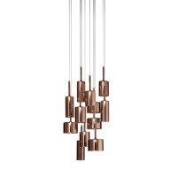 Spillray est une grande suspension composée d’une succession de diffuseurs en verre de différentes formes et tailles. Les différents cylindres plus longs ou plus larges sont disponibles avec des finitions cristal, rouge, gris et bronze métallique. La rosace a une structure rectangulaire en métal chromé. Spillray est disponible en différentes variantes avec plus ou moins de diffuseurs. Suspension à grand effet scénique conçue pour l’éclairage de grands espaces, aussi bien résidentiels que dans les restaurants ou les hôtels.