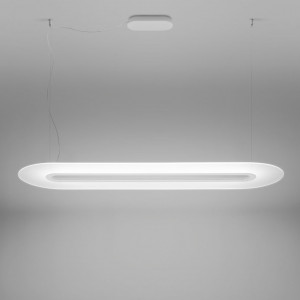 Famille de lustres LED avec une ligne fine et invisible qui composent la collection Opti-Line, une évolution de la célèbre O-Line. Le corps est composé d'une fine plaque micro-gravée et travaillée au laser avec OptiLight Technology™, ce qui confère à la lampe un effet de transparence et de légèreté. Ce système de construction permet à la structure d'être complètement transparente si elle est éteinte, tandis que lorsqu'elle est allumée, elle génère une lumière diffuse et uniforme, provenant du corps central. Idéal pour éclairer une table ou un bureau, ces objets design sont disponibles en blanc/transparent et en aluminium poli/transparent. Sa forme essentielle lui permet de s'adapter notamment dans des contextes commerciaux tels que les bureaux, les showrooms ou les grandes salles de réunion. Le style de ce corps léger se marie bien avec les styles minimalistes, modernes et contemporains. Lorsqu'il est utilisé dans les pièces d'une maison, Opti-Line se marie bien surtout dans un espace ouvert ou dans un studio personnel.