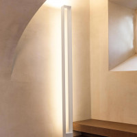 Lampadaire ou suspension constitué de panneaux lumineux qui, avec un effet optique, masquent la source lumineuse. La structure est en aluminium extrudé tandis que les bornes et la base sont en aluminium moulé sous pression avec diffuseurs opale et méthacrylate transparent. La structure est peinte en blanc mat, noir mat, gris titane et or (uniquement dans la version au sol). Dans la version au sol, la source de lumière ascendante LED crée une lumière diffuse vers le plafond et la LED latérale génère une lumière ambiante indirecte.